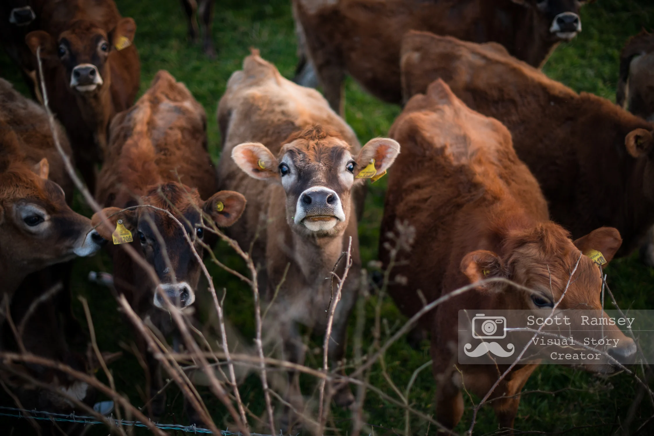 Calves standing in a farmers field in South Hams, Devon, England. © Scott Ramsey