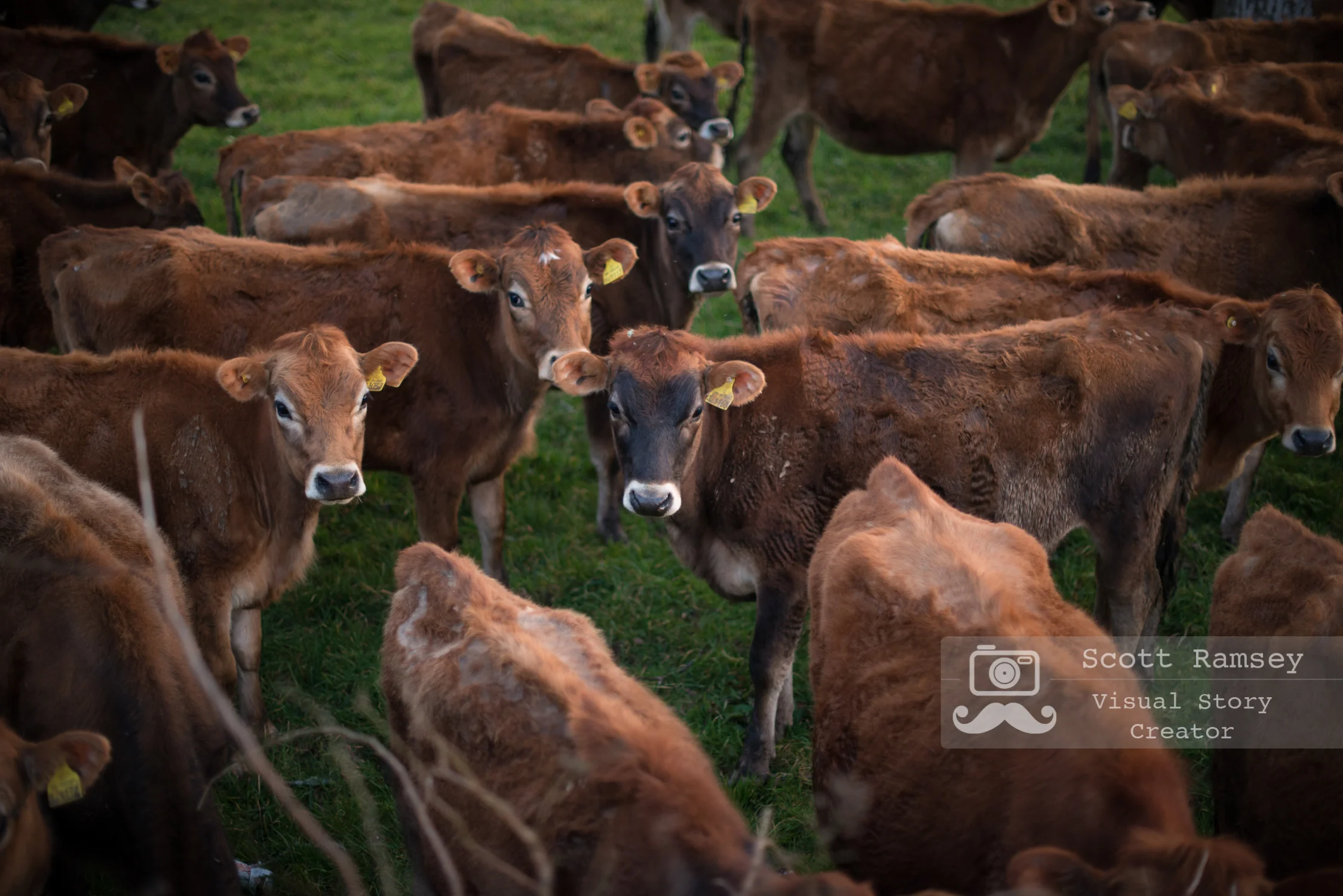 Calves stand in a farmers field in South Hams, Devon, England. © Scott Ramsey