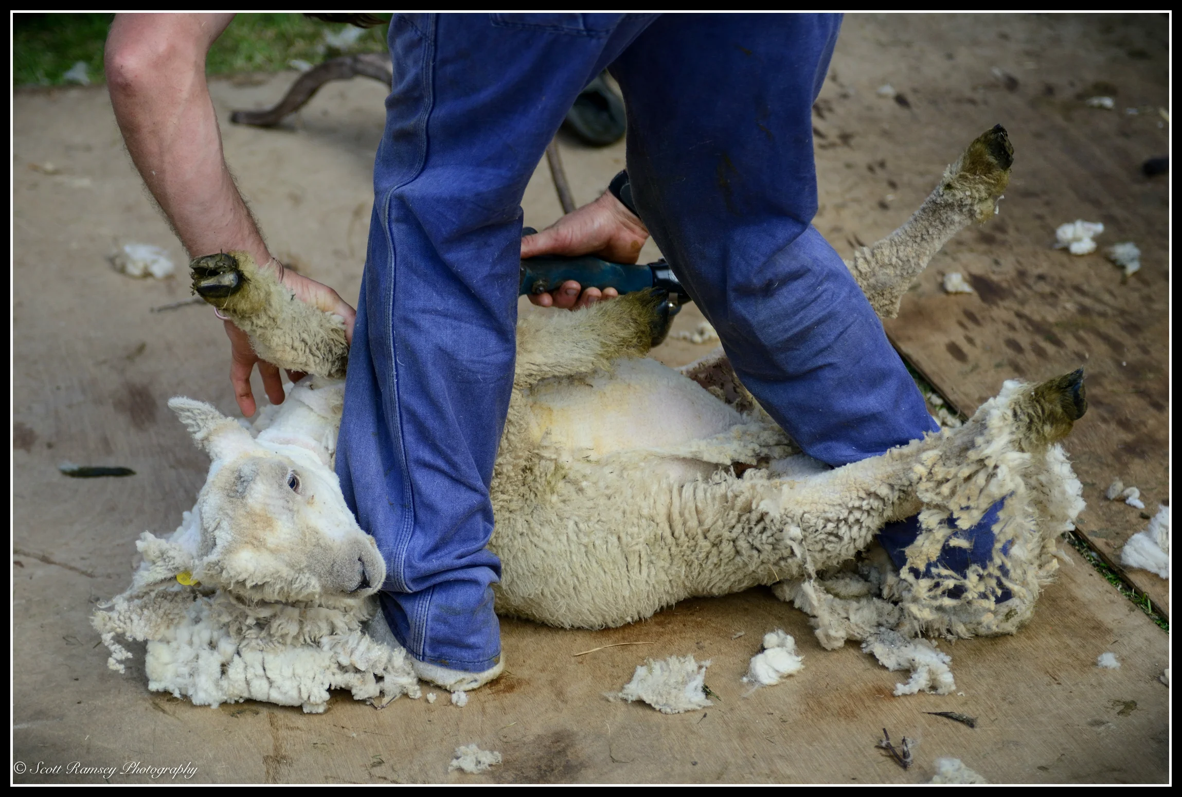 The lyrics from this traditional Australian folk song called "Click go the Shears" (Find out about the song here) reminds me of the time I photographed sheep shearing in Sussex. I watched the shearer almost dance with the sheep, as he pulled and lifted the animal around, never hurting it. Firm but gentle would be the best explanation. Like any child who goes to the barbers for the first time, these sheep also didn't appreciate having their haircut. However, for all the protesting and bleating, the sheep quickly succumb and become docile enough for the artful shearer to position 'the great beast' into a safe shearing position. The shearer pulls and holds the sheep in yoga-like positions allowing the animal's skin to pull tight and thus avoiding any cuts. It may look uncomfortable, but it is a necessary process for the welfare of the animal and reminded me of a recent trip to the physiotherapist!